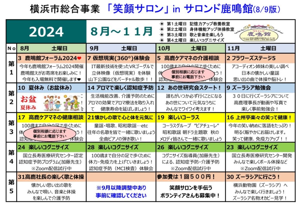 2024.12.19 スケジュール 月間スケジュールテスト投稿4 egao.2024 ABOUT US NPO法人笑顔FacebookContact子どもから高齢者までのあらゆる世代にわたる地域住民の生活し易い地域コミュニティの再生に寄与することを目的として活動します。